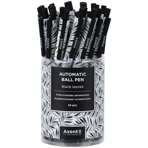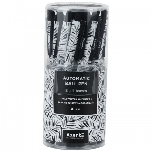 Ручка кулькова авт. AXENT AB1092-07-A Black Leaves, синя (24) /AB1092-07-A/