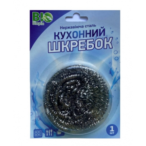 Шкребок з нержавіючої сталі, зі спіральним сплетінням. Призначений для чистки сильно забруднених поверхонь, каструль, сковорідок, раковини та плити.