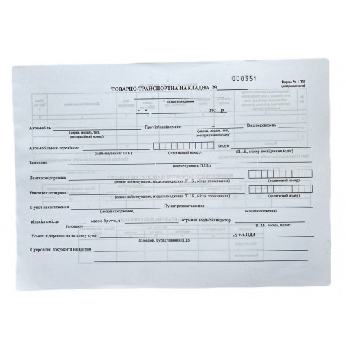 Бланк "Товарно-транспортна накладна" А4, офсет, двосторонній, з номерацією (100арк) (Зразок 2022р)