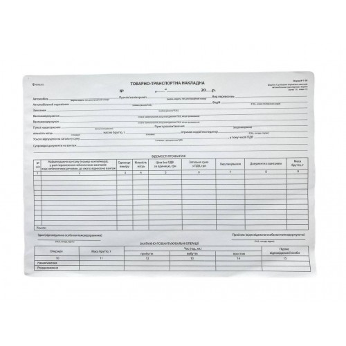Бланк "Товарно-транспортна накладна. Додаток №7" А4, офсет, односторонній, без номерації (100арк)