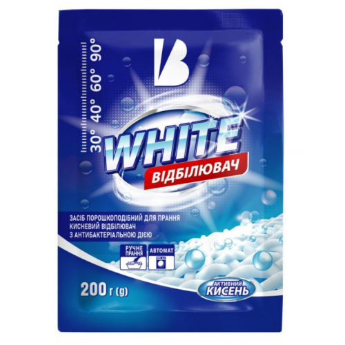 Тип засобу - порошок, Призначення - відбілювання, Колір білизни - для білого, об'єм/вага - 200 г, прання - універсальне