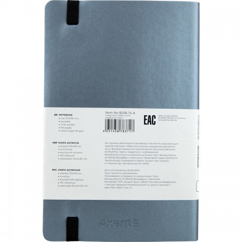 Блокнот AXENT 125*195мм 96арк. Partner Soft 8206-14-A срібно-синій, на гумуці (клітинка) /8206-14-A/