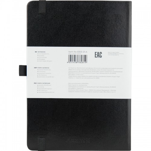 Блокнот AXENT 145*210мм 96арк. Partner Prime 8305-01 чорний, на гумці (клітинка) /8305-01-A/