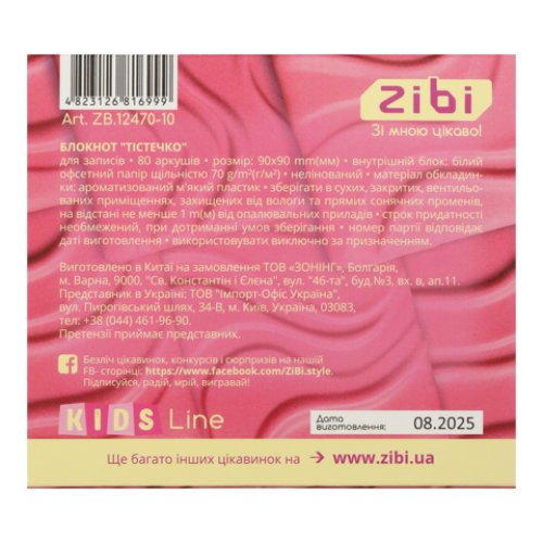 Блокнот ZiBi KIDS Line 90х90мм 80арк. CAKE 12470-10 ароматизований, обкладинка Soft touch (нелінований) /ZB.12470-10/