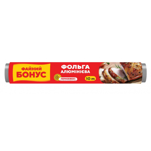 Фольга алюмінієва Бонус призначена для запікання м'яса, риби, овочів, а також упаковки та зберігання харчових продуктів. Витримує високу температуру і сильну заморозку.