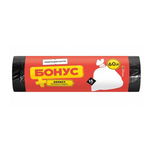 Пакети д/сміття 60л/ 15шт/60х80см БОНУС (70)