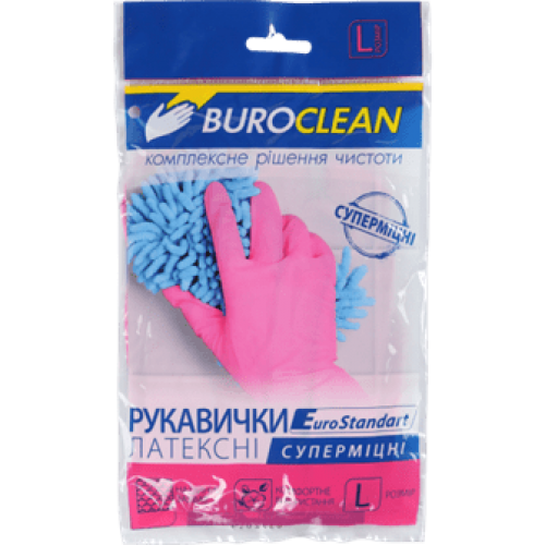 Рукавички гумові BUROCLEAN унів. суперміцні рожеві L (великі) /10200305/