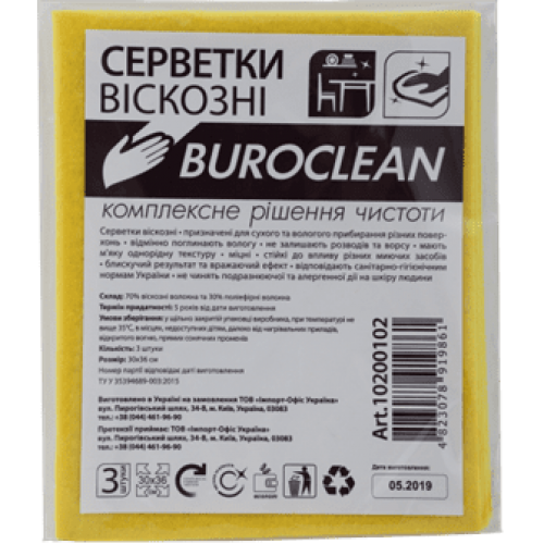 Серветка д/прибирання BUROCLEAN віскозна 3шт 10200102 (100) /10200102/