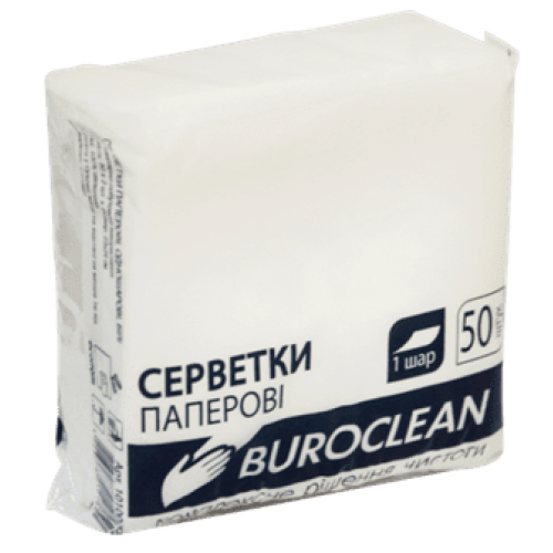Серветки паперові стол. BUROCLEAN 10100202 24*24см 50шт. 1-шар. білі (60) /10100202/