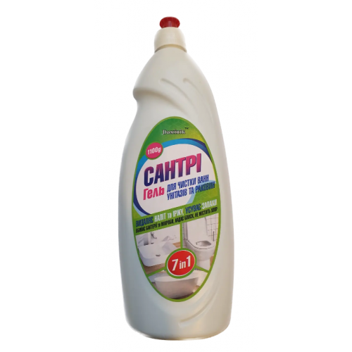 Сантрі гель впорається з будь-яким забрудненням. Легко видаляє іржу, сечовий камінь, осади солей жорсткості. Вбиває бактерії та мікроби, усуває неприємні запахи. Надає унітазу, раковині, ванні, кахельній поверхні блиску.