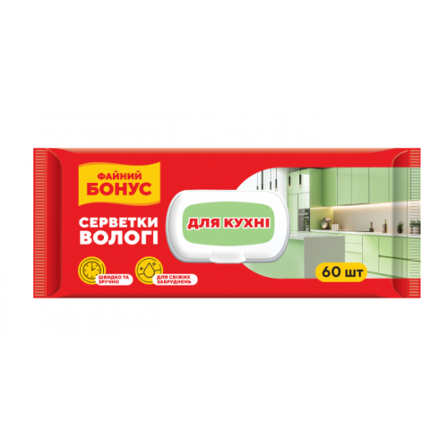 Серветки д/прибирання вологі Файний БОНУС 60шт. д/кухні, з клапаном (12)