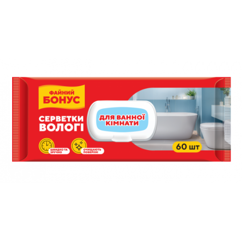 ФАЙНИЙ БОНУС Серветки господарчі вологі для ванної кімнати з клапаном, 60шт