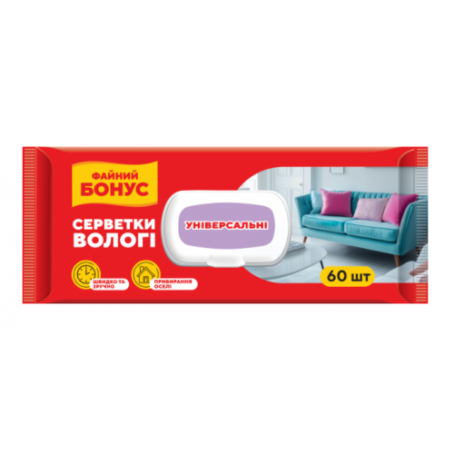 Серветки д/прибирання вологі Файний БОНУС 60шт. універсальні, з клапаном (12)