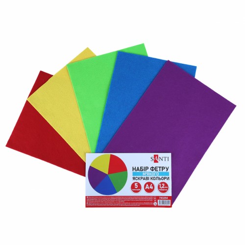 Фетр листовий (поліестер) 21х30см SANTI 743254 170г/м, яскраві кольори (м'який) (5арк.) (ціна за уп.) /743254/