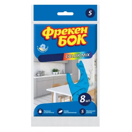 Рукавички гумові Фрекен БОК 8шт. нітрилові, COLOR MIX S (малі)