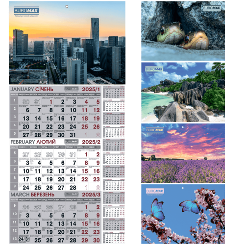 Календар настінний квартальний BUROMAX 2106 (1 пружина) 2026р. (20) /BM.2106/