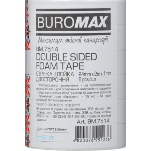 Клейка двостороння стрічка на спіненій основі від BUROMAX здатна надійно з'єднувати різні поверхні, що мають складну конфігурацію, отвори або шорстку текстуру. Завдяки пінистій структурі, стрічка легко притискається, при цьому міцно з'єднуючи нерівні та горбисті поверхні. Підходить для оздоблювальних робіт, використовується в дрібному побутовому ремонті, для кріплення не важких і невеликих предметів інтер'єру (гачків, полиць, плінтусів, дзеркал тощо).