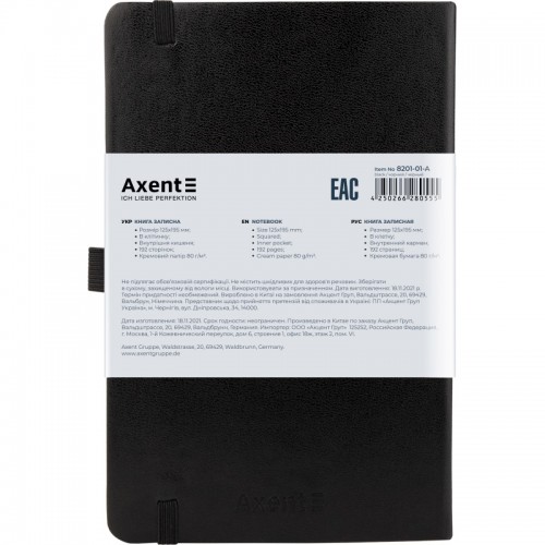 Блокнот AXENT 125*195мм 96арк. Partner 8201-01 чорний, на гумці, крем. папір (клітинка) /8201-01-A/