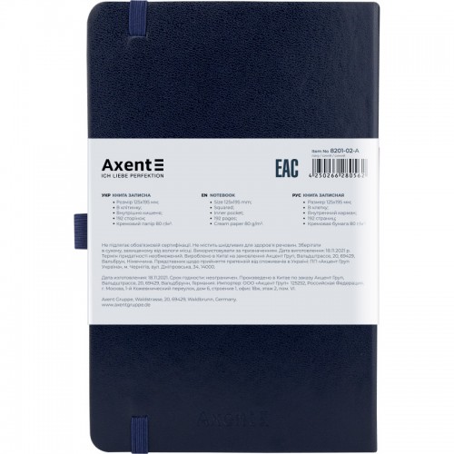 Блокнот AXENT 125*195мм 96арк. Partner 8201-02 синій, на гумці, крем. папір (клітинка) /8201-02-A/
