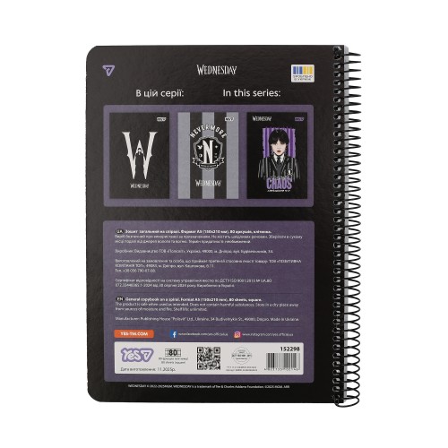 Блокнот YES А5 на спір. тв. пал. 80арк. Wednesday Chaos 152298 (клітинка) /152298/