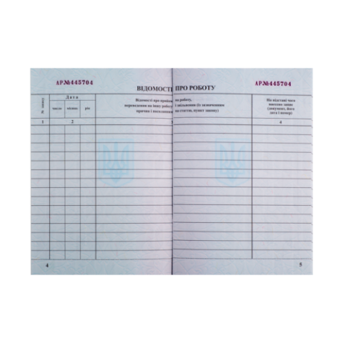 Бланк "Трудова книжка" з водяними знаками, СЗ /BM.287060/