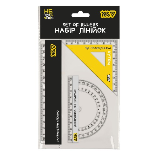Набір торгової марки Yes призначений для створення креслень, побудов, малюнків, вимірювання лінійних розмірів, відстаней.