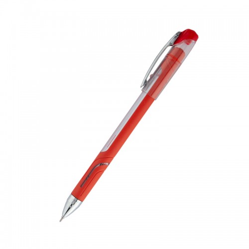 Ручка кулькова з непрозорим прогумованим пластиковим корпусом, прозорими вставками і металічним кліпом. Довжина лінії 10 000 м.Чорнило підвищеної в'язкості забезпечує суперм'яке письмо. Колір корпусу відповідає кольору чорнила. Пишучий вузол 0,7 мм. Колір чорнила і корпуса: червоний.