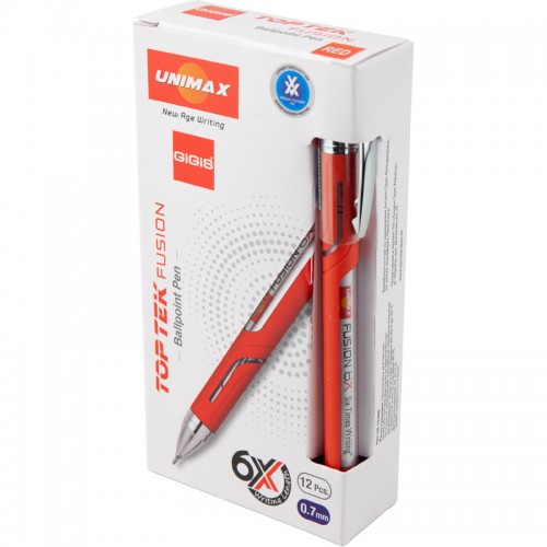 Ручка кулькова Unimax UX-10 Fusion 6X 0,7мм червона, 10км (12) /UX-10 000-06/