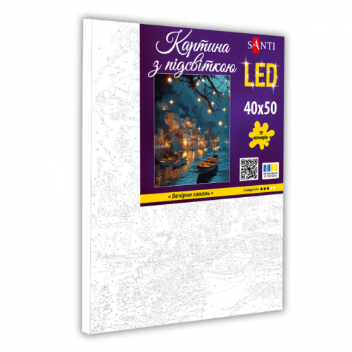 Відчути себе справжнім художником можливо навіть якщо ви ніколи не брали до рук пензель. Картини за номерами від бренду SANTI з LED підсвіткою створені саме для того, щоб ви захоплююче провели свій час, розвинули творчі здібності та отримали чудовий витвір мистецтва, створений власноруч. Набір для малювання SANTI допоможе створювати дивовижні сюжети, слідуючи пронумерованим контурам на полотні та використовуючи якісні акрилові фарби.