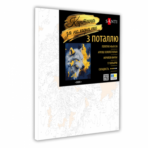 Картина за номерами "Вовк" ТМ SANTI з поталлю – це чудовий подарунок для себе та ваших близьких!