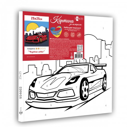 Відчути себе справжнім художником можливо навіть якщо ви ніколи не брали до рук пензель. Картини за номерами від бренду SANTI створені саме для того, щоб ви захоплююче провели свій час і розвинули творчі здібності. Набір для малювання SANTI - це живопис доступний кожному, адже дивовижні сюжети можна легко створити слідуючи пронумерованим контурам, зображеним на полотні , використовуючи якісні акрилові фарби. Щоб потрапити до безмежного світу творчості та мистецтва необхідно прости купити картини за номерами і слідувати інструкціям, доданим до набору. Творчий набір містить все, що потрібно для створення шедеврів: • Натуральне полотно з бавовни на дерев'яному підрамнику з галерейною натяжкою, з нумерацією контурів для зручності • Три якісні нейлонових художніх пензлики різного розміру • Мальовнича палітра з пронумерованими контейнерами акрилових фарб • Контрольний лист та графічна схема • Детальна інструкція Зверніть увагу! Кольори фарб можуть несуттєво відрізнятися від зображених на фото або електронних пристроях. Вироблено в Україні. Картина за номерами SANTI Червоне авто. Набір для малювання за номерами безпечний та екологічно чистий продукт, виготовлений з натуральних матеріалів. Картина по номерам Santi це неймовірний подарунок для себе і для близьких.