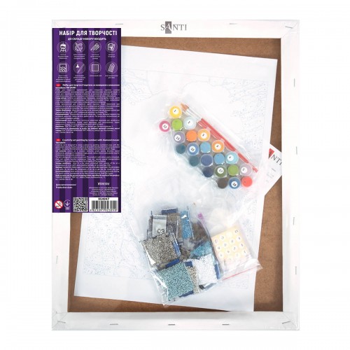 Пориньте в містичний і таємничий світ, створюючи унікальний шедевр з картиною за номерами з алмазною мозаїкою 2 в 1 Wednesday and Agnes" ТМ SANTI. Цей набір для творчості поєднує найкраще з двох популярних хобі: захоплюючість картини за номерами і блиск алмазної мозаїки, що зачаровує. Це відмінний вибір для тих, хто шукає щось нове та цікаве – підходить для дітей, підлітків та дорослих. Процес створення такої картини діє як справжня арт-терапія: допомагає зняти стрес, розвиває посидючість, уважність, а також сприяє розслабленню. Картина за номерами з алмазною мозаїкою 2 в 1 ТМ SANTI складається з полотна розміром 40х40 см, натягнутого на дерев'яний підрамник. Зображення на полотні поділено на зони: ділянки для розфарбовування розмічені цифрами, кожна з яких відповідає певному кольору акрилової фарби, а ділянки для алмазної мозаїки покриті клейовим шаром і мають маркування. У набір також входять акрилові фарби, пензлі, акрилові гранені стрази різних кольорів, стілус (спеціальний олівець) для зручного захоплення каміння, пластиковий лоток для їх сортування, силіконовий клей/віск, контрольний лист та докладна інструкція. Поєднання гладких поверхонь і об'ємних сяючих страз створює дивовижний 3D-ефект — картина набуває глибини, гри світла та блиску, створюючи вражаючий візуальний ефект. У наборі для творчості алмазної мозаїки "Венздей та Агнес" ТМ SANTI представлені улюблені та відомі персонажі серіалу «Венздей», які перетворюють творчий процес на захоплюючу пригоду. Дитина із захопленням порине в роботу, отримає радість від створення картини своїми руками і з гордістю прикрасить нею свою кімнату. Готова мозаїка не потребує додаткового оформлення – вона одразу готова зайняти місце в інтер'єрі або стати оригінальним подарунком для шанувальників серіалу. Набір для творчості TM SANTI містить все необхідне для створення шедевру: • полотно на дерев'яному підрамнику з клейкою основою для мозаїки та пронумерованою схемою для малювання • набір акрилових пронумерованих фарб для малювання • набір пензлів для нанесення фарб • контрольний лист • докладна інструкція • круглі акрилові камені-стрази різних кольорів, запаковані у зручні зип-пакети • двосторонній олівець (стилус) • пластиковий піддон для комфортної роботи зі стразами • силіконовий клей • наклейки для нумерації додаткових пакетиків • дизайн з ліцензійними персонажами серіалу Wednesday. Зверніть увагу! Кольори акрилових фарб і страз можуть відрізнятися від зображених на фото в залежності від налаштування вашого монітора. Картина за номерами з алмазною мозаїкою 2 в 1 "Wednesday and Agnes" ТМ SANTI - ідеальне рішення для шанувальників серіалу "Wednesday", що бажають втілити улюблені сюжети та персонажів з унікальними блискучими елементами, а також створити.