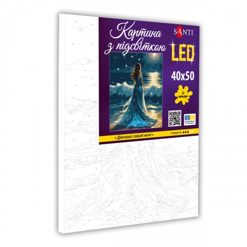 Картина за номерами SANTI Дівчина і хвилі ночі, 40*50см, LED підсвітка