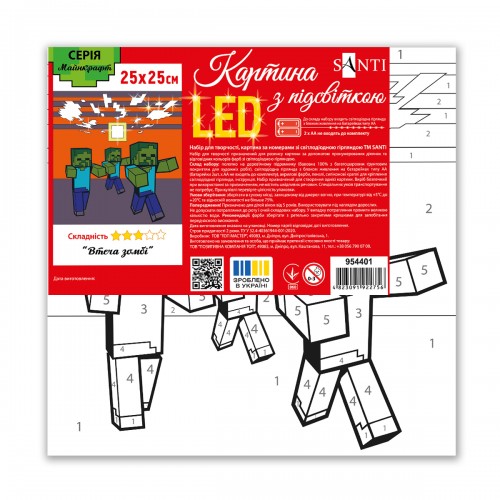 Картина за номерами SANTI Майнкрафт. Втеча зомбі 25х25 см LED підсвітка
