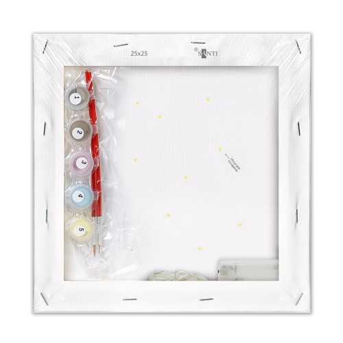 У кожній картині за номерами ТМ SANTI представлені цікаві та знайомі дітям персонажі, які перетворюють малювання на справжню пригоду. Дитина зможе відтворити на полотні сцени з улюблених мультфільмів, коміксів та ігор, намалювати милих звірят або яскраві фантастичні світи, а світлодіодна гірлянда з LED елементами, що підсвічують картину, надасть їй неймовірного ефекту живого сюжету. Для зручності в набір включені спеціальні клейові силіконові краплі, на які легко та надійно кріпиться світлодіодна гірлянда. Картина з LED елементами може використовуватися не тільки як декор, але і як нічник, прикрашаючи та доповнюючи ваш інтер'єр. Дитина не тільки отримає задоволення від творчого процесу, а й зможе з гордістю прикрасити свою кімнату власним шедевром із улюбленими героями!