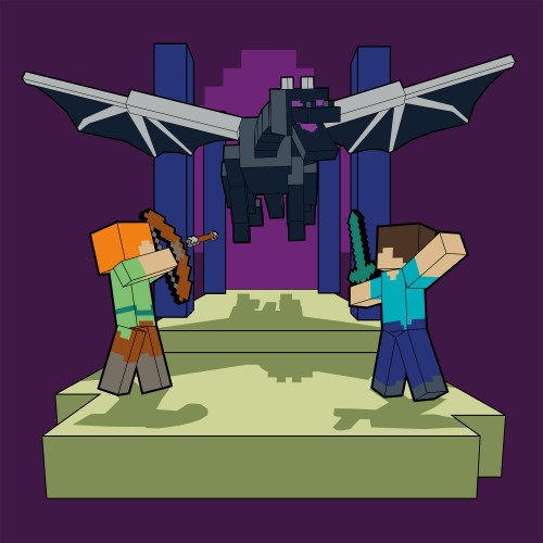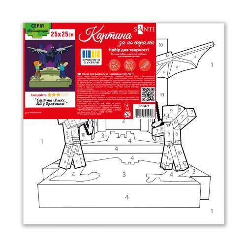 Картина за номерами SANTI Майнкрафт Стів та Алекс бій з драконом 25х25см
