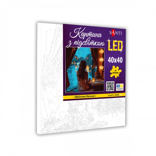 Відчути себе справжнім художником можливо навіть якщо ви ніколи не брали до рук пензель. Картини за номерами від бренду SANTI з LED підсвіткою створені саме для того, щоб ви захоплююче провели свій час, розвинули творчі здібності та отримали чудовий витвір мистецтва, створений власноруч. Набір для малювання SANTI допоможе створювати дивовижні сюжети, слідуючи пронумерованим контурам на полотні та використовуючи якісні акрилові фарби.
