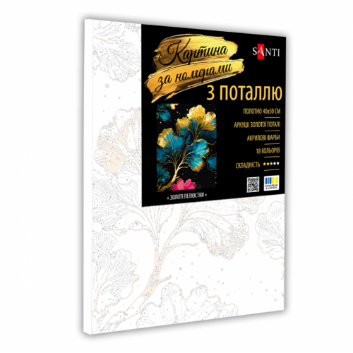Картина за номерами "Золоті пелюстки" ТМ SANTI з поталлю – це чудовий подарунок для себе та ваших близьких!