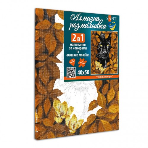 Картина за номерами з алмазною мозаїкою SANTI Чорна пантера, 40*50 см.