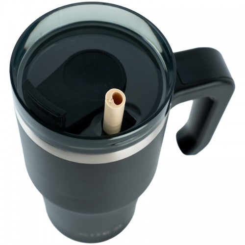 Термокружка з ручкою 600 мл. ¶Компактна і зручна. Має силіконову трубочку в комплекті.Гумовий клапан щільно прилягає до пластику та запобігає протіканню напою. ¶Матеріал: нержавіюча сталь ¶Внутрішня колба зі сталі AISI 304, її хімічний склад та властивості роблять її найбільш придатною для використання у харчовій промисловості. Добре утримує тепло. Розмір: 185х89х130мм.