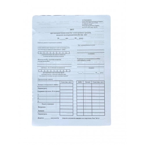 Бланк "Звіт про використання коштів,електронних грошей,виданих на відрядження або під звіт" А5, офсет, двосторонній (100арк) (№239 від 09.05.2023р.)
