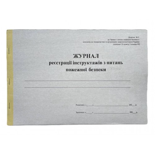 Книга "Реєстрації інструктажів з питань пожежної безпеки" 50арк. офсет, прошита