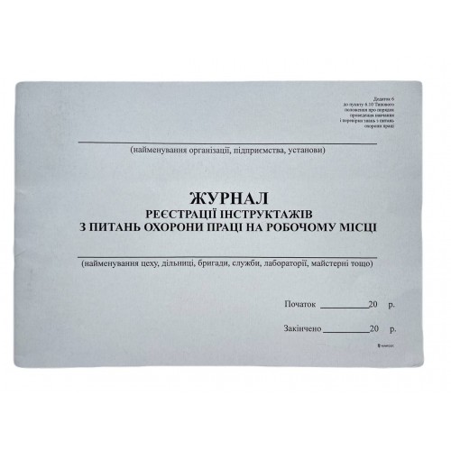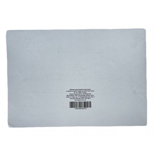 Книга "Журнал реєстрації інструктажів з питань охорони праці на робочому місці" 48арк. офсет, горизонтальна, прошита (Додаток №6)