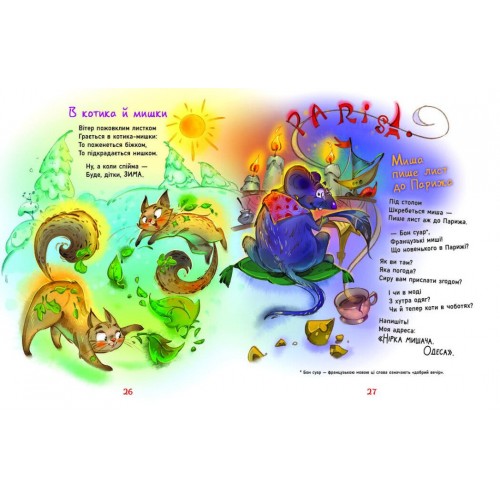 Збірка веселих віршів відомого українського поета і письменника Віктора Терена неодмінно приверне увагу найжвавішого непосидю! Тут і несподівані сюжетні віражі, і добрий гумор, і цікаві привабливі персонажі - все, що так захоплює уяву і водночас стимулює творчі здібності дитини. Маленький читач познайомиться з котом-диваком, який не ловить мишей, гоноровою коровою, мешканцями барабана, жучком Ітно-Тідно та іншими героями. Для дітей дошкільного та молодшого шкільного віку.