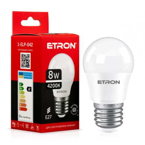 Лампа ETRON світлодіодна 1-ELP-042 G45 E27 8W 4200K (сфера)