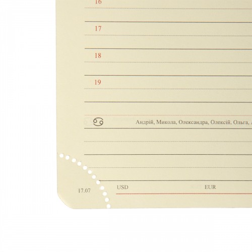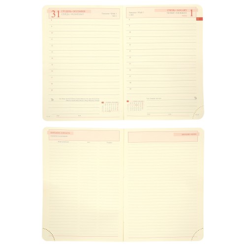 Щоденник Leo Planner Aldento – ваш надійний помічник для детального щоденного планування, фіксації ідей та ефективної організації особистих і робочих справ. Формат А6 – мінімум місця, максимум мобільності. Ідеальний для коротких нотаток у дорозі. Наявність двох лясе додає зручність при пошуку потрібної сторінки та дозволяє швидко орієнтуватися у записах. Функціональне рішення для тих, хто веде паралельні плани чи використовує щоденник для кількох напрямків. Інтегральна обкладинка поєднує гнучкість, легкість і витривалість. Вона виглядає елегантно, залишаючись тонкою та зручною в користуванні. Якісний та зносостійкий PU-матеріал обкладинки забезпечить довготривалий презентабельний вигляд ділового записника, захистить від вологи та пилу. Обкладинка приємна на дотик, легко очищується і надає щоденнику стильного вигляду. Спеціально розроблений декоративний шов на обкладинці підкреслює дизайн та створює відчуття стилю й уваги до деталей. Можливість персоналізації у вигляді сліпого тиснення або тиснення фольгою – ефектне рішення для створення унікального стилю на ваш вибір. Паперовий блок продуманий до дрібниць для комфортного щоденного користування. Він налічує 352 сторінок, що забезпечує достатньо простору для щоденних записів, планів і нотаток. Папір щільністю 80 г/м² дозволяє комфортно писати ручкою чи олівцем без просвічування. Кремовий папір не втомлює очі навіть за тривалої роботи. Закруглені кути паперового блока не лише додають стильного вигляду, а й запобігають швидкому зношенню сторінок. Це практичне рішення для збереження ділового записника охайним у щоденному користуванні. Перфоровані кути паперового блока дозволяють легко маркувати актуальну сторінку. Це зручний функціональний елемент, що допомагає швидко орієнтуватися у записах та тримати планування під контролем. Фольгований паперовий зріз надає елегантного блиску та преміального вигляду, що підкреслює ваш статус та вишуканий стиль вашого планера. Характеристики: - Тип: датований - Формат / розмір: A6 - Тип обкладинки: інтегральна - Матеріал обкладинки: PU - Закладки: 2 закладки-ляссе - Можливість персоналізації: сліпе тиснення або тиснення фольгою на обкладинці Характеристики внутрішнього блоку: - Кремовий офсет, 80 г/м² 352 сторінки - Колір паперового зрізу: фольгований - Відривний перфорований куток - 2 мапи України та Європи - Календарі та довідково-інформаційний блок із корисними даними - Додаткові сторінки для та нотаток Leo Planner — ваш надійний супутник кожного дня. Наші щоденники створені з любов’ю до деталей: якісний папір, зручне оформлення та стильні обкладинки. Обирайте між датованими та недатованими блоками, залежно від вашого ритму життя. Класичні або креативні дизайни дозволять підкреслити саме ваш характер. Leo Planner — це більше, ніж записник. Це натхнення у кожній сторінці. Не відкладайте ідеї — дозвольте Leo Planner втілювати їх щодня.