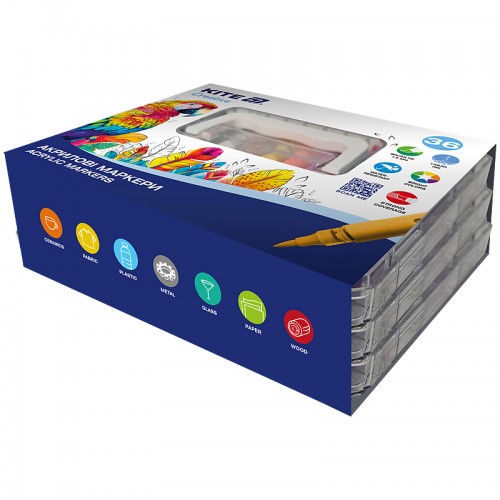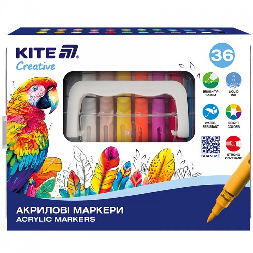 Набір маркерів акрилових KITE Creative 36кол. з рідкими чорнилами K-1163 /K-1163/