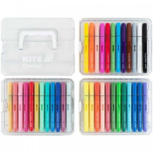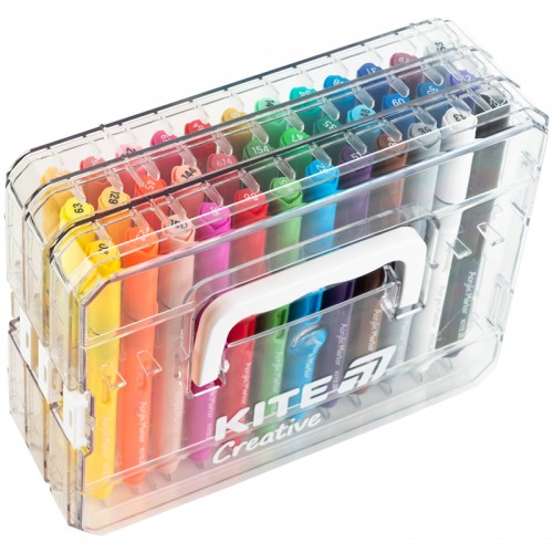 Акрилові маркери Kite Creative з рідкими чорнилами – набір для яскравої творчості та безмежних ідей. Особливості: • у наборі 36 яскравих кольорів; • система прямої подачі чорнил (free ink system) – використання до останньої краплі; • яскраві рідкі акрилові чорнила підходять для різних поверхонь (папір, картон, дерево, камінь, кераміка чи тканина); • пишучий вузлик-пензлик – різна ширина лінії для тонких деталей і виразних мазків; • презентабельна акрилова коробка для зберігання і транспортування; • ідеально підходять для творчості, хобі, DIY-проєктів і подарунків.