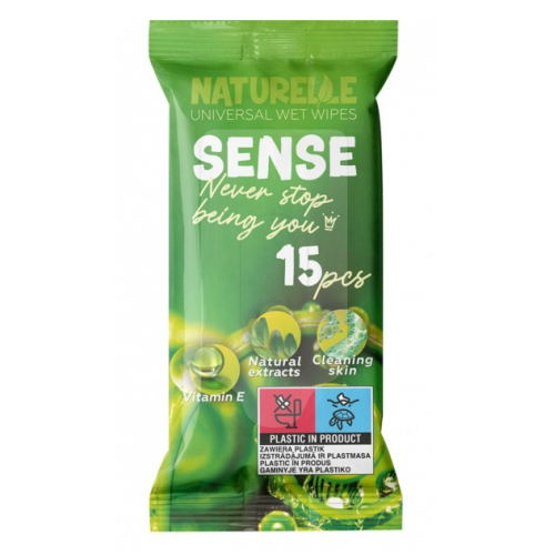 Вологі серветки універсальні «Naturelle» Sense, 15 шт.