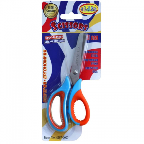 Ножиці дитячі CLASS 4287-06C 133мм ергоном., 2-х кольорові гнучкі прогумовані ручки, сині (24) /4287-06C/